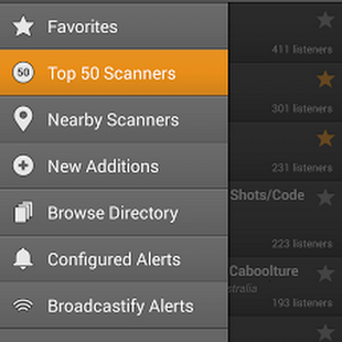 * View the top 50 scanners that have the most listeners (list updated every 5 minutes).