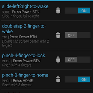 * Added default gestures for slide right-to-left on the screen bottom to lock and doubletap with one finger anywhere to wake. Gesture reset needed for the changes to update (Settings -> Reset Gestures)