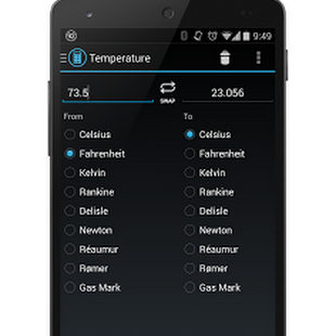 The beautiful holo-themed user interface allows for quick and easy conversions from a number in one unit to another. The goal is to keep it simple – you won’t be overwhelmed with an excess of options and settings, allowing you to perform your desired conversion as quickly as possible. Perfect for work, school or in the kitchen.
