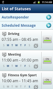 ✔ Silent mode schedule – set ringer mode to silent during status duration or set vibrate mode to silent or torn off both (ringer and vibration)