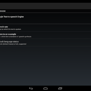 To use Google Text-to-speech on your Android device, go to Settings > Language & Input > Text-to-speech output. Select Google Text-to-speech Engine as your preferred engine. Note, on many Android devices, Google Text-to-Speech is already turned on, but you can update to the latest version here.